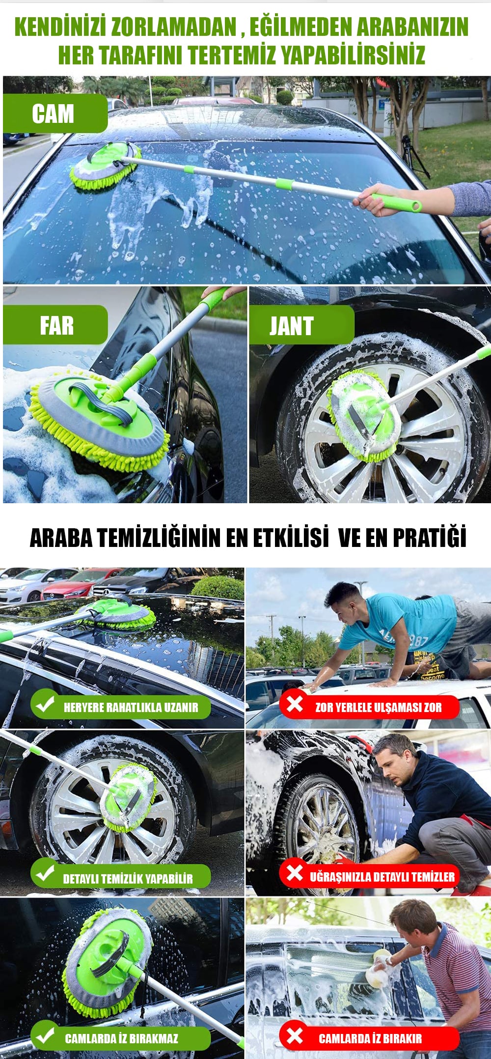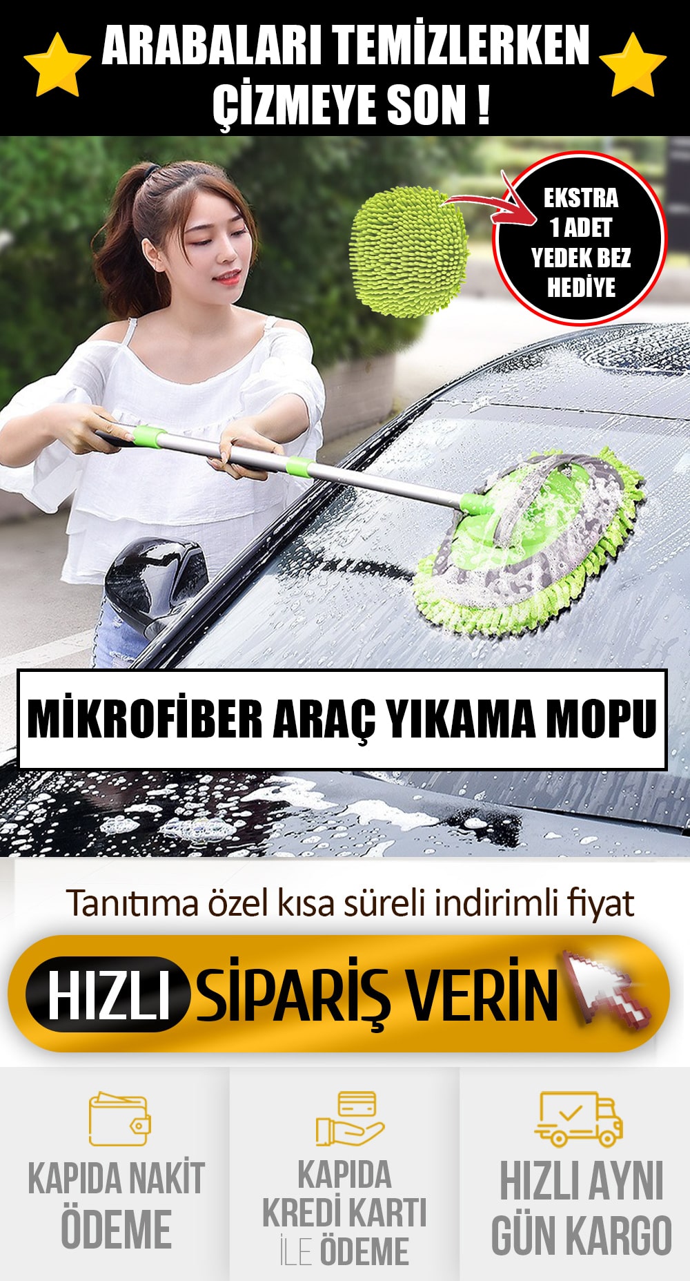 1 Adet ARAÇ YIKAMA MOPU (2 ADET MİKROFİBER BEZ) -